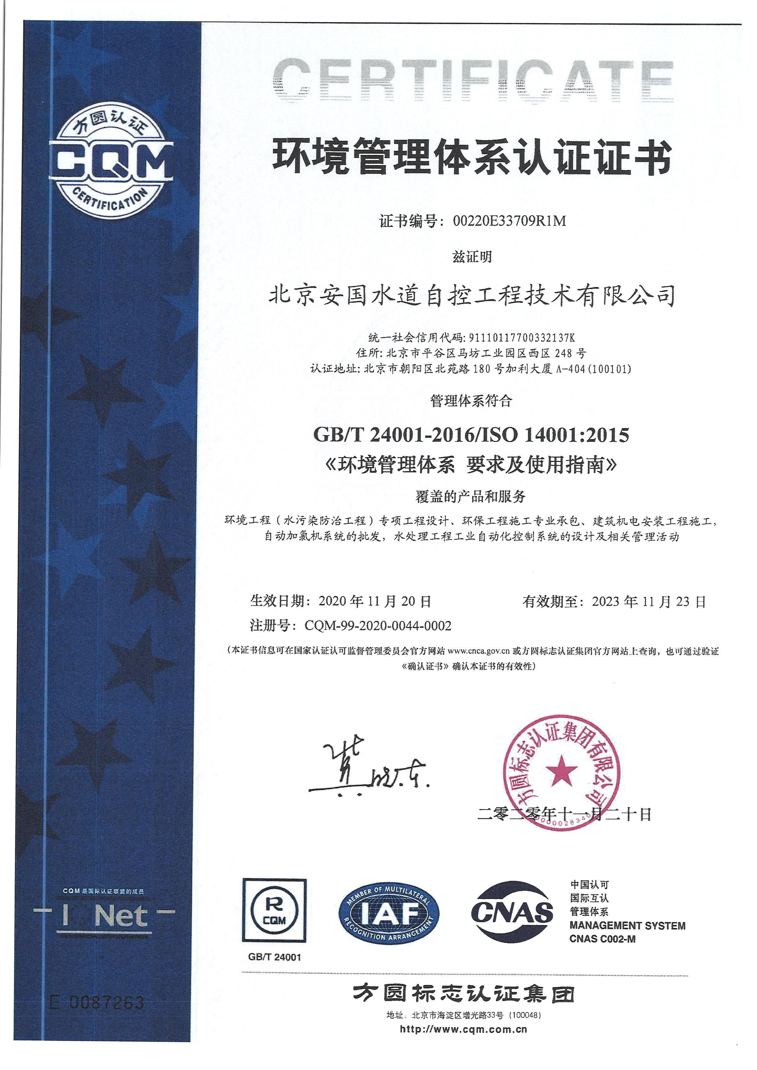 • 北京安國水道自控工程技術有限公司入駐中國給水排水品牌委員會